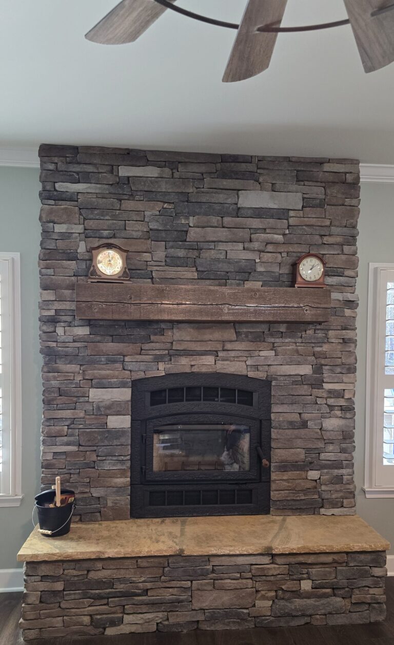 The work needed to remove these old appliances is typically isolated to the immediate area around the old fireplace – although many of our customers opt to have some veneer stone installed around the fireplace, or up to the ceiling in one of dozens of styles available. Other visual upgrade options include new mantle options, new fireplace accessories, stone arches and more!